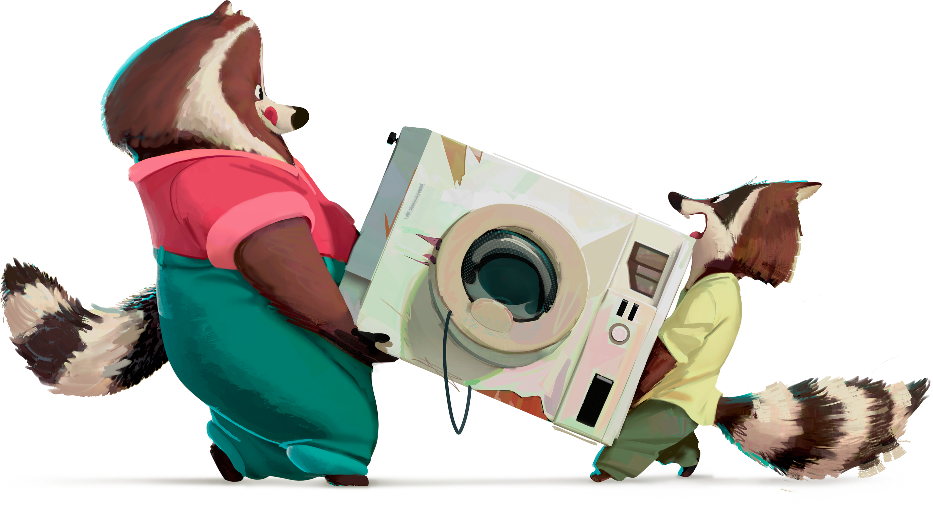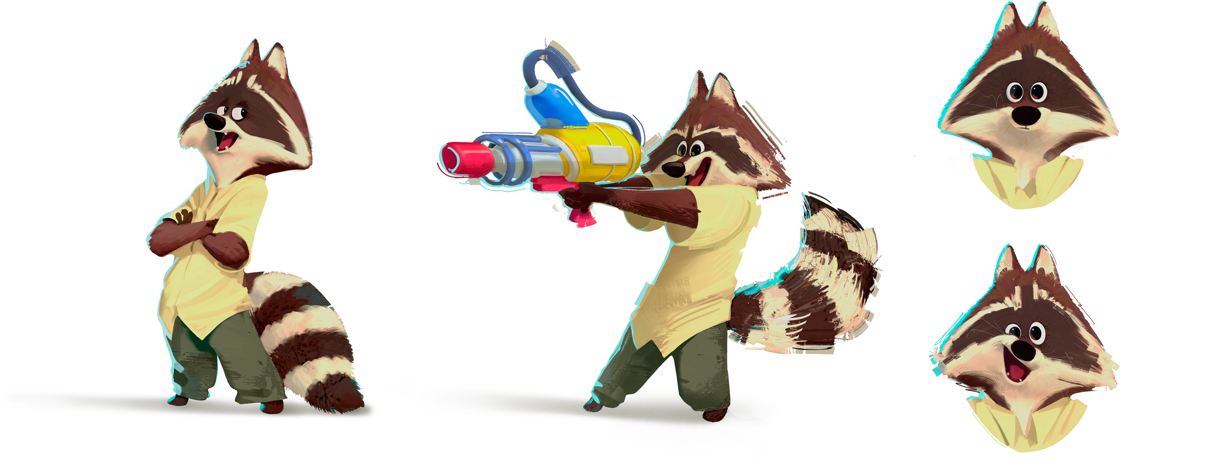 This personal project is about two raccoon brothers, Max and Ricky, who dream of cleaning up their filthy city by running a laundromat. But when their revolutionary detergent threatens the underworld's grip on urban grime, they find themselves at odds with the Rat Gang and their mysterious boss - a giant cockroach