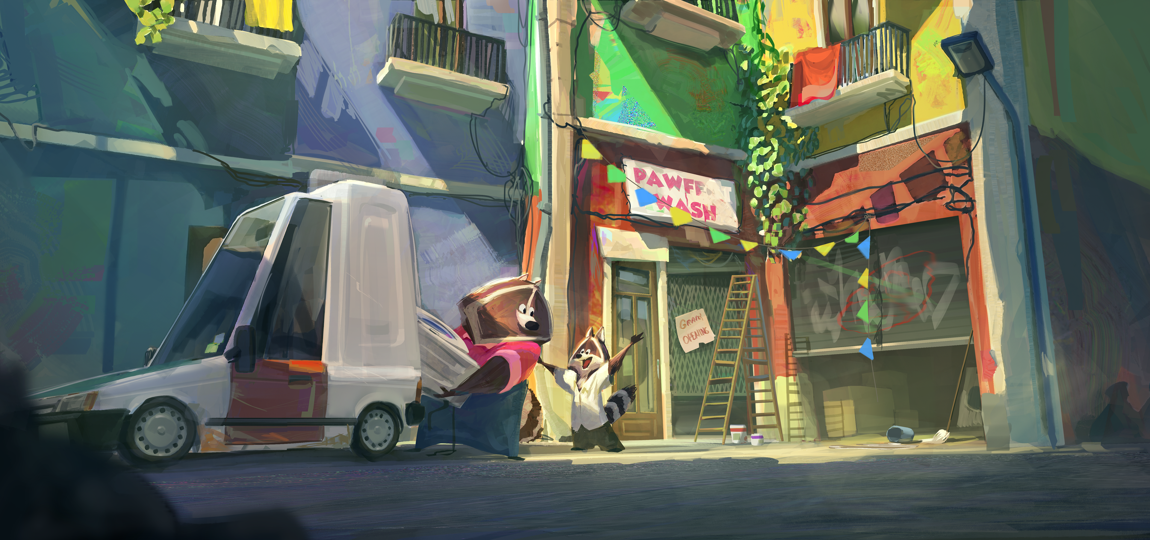 This project is about two raccoon brothers, Max and Ricky, who dream of cleaning up their filthy city by running a laundromat. But when their revolutionary detergent threatens the underworld's grip on urban grime, they find themselves at odds with the Rat Gang and their mysterious boss - a giant cockroach. The project is currently in development.